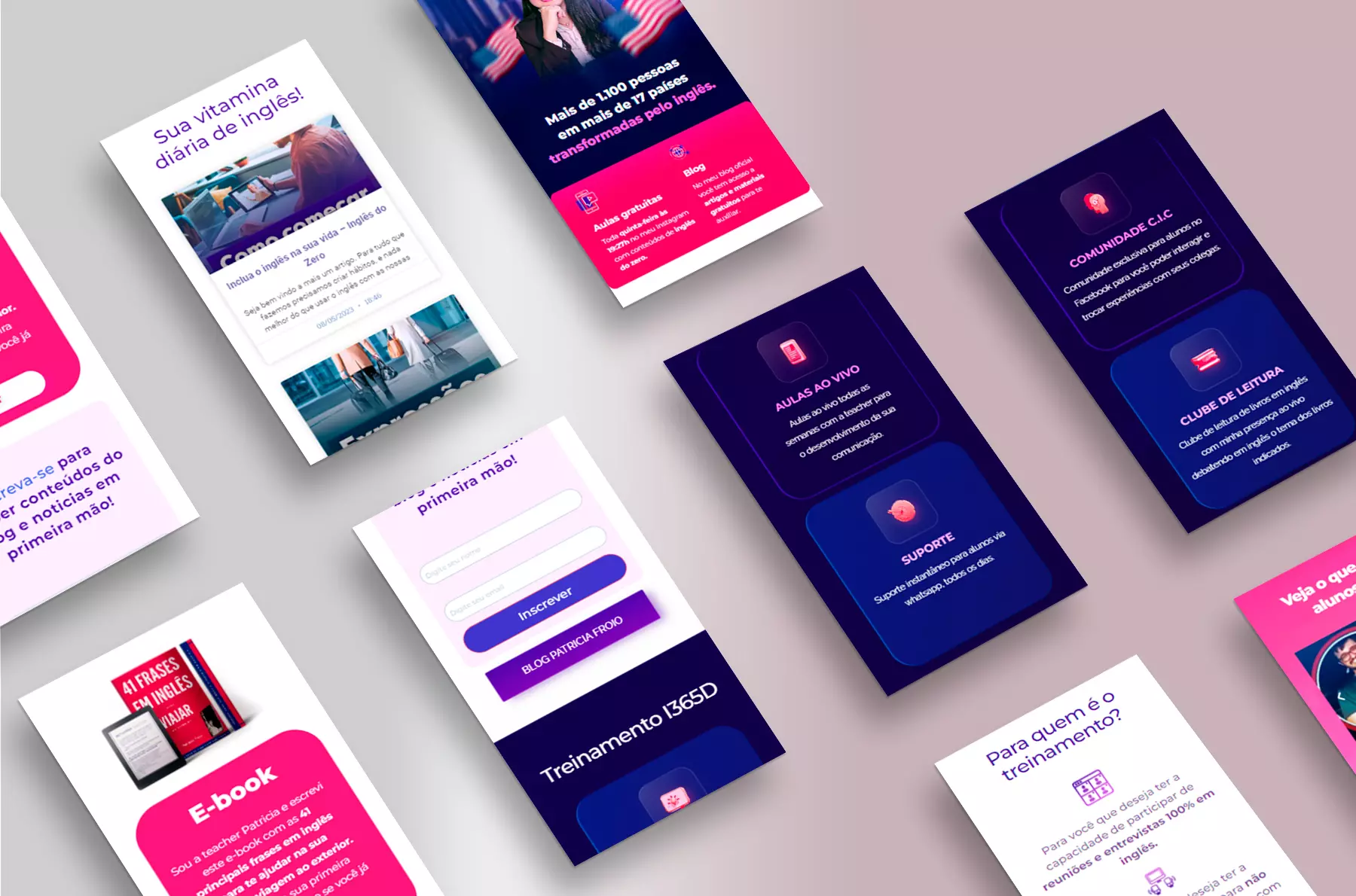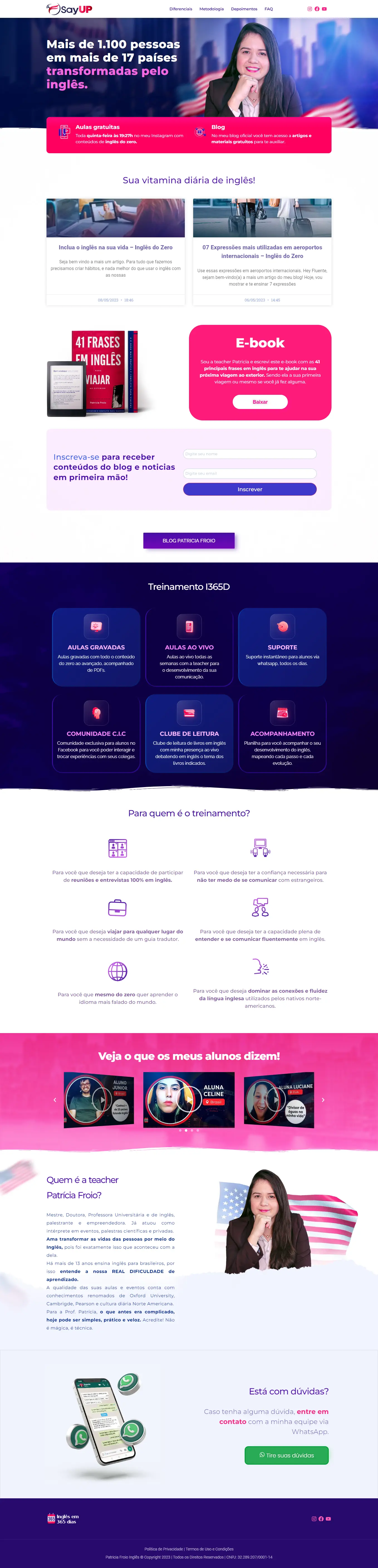 A landing page foi desenvolvida para apresentar o especialista em inglês e seus serviços de forma atraente e convincente, enquanto destaca o valor do blog como uma ferramenta educativa adicional. O design foca na credibilidade do especialista e na qualidade do conteúdo oferecido no blog, incentivando os visitantes a explorarem mais.
